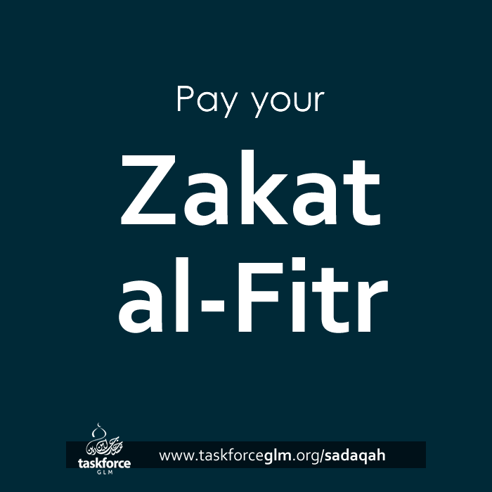 Zakat-ul-Fitr is £5 per person and must be paid before Eid salah. Pay now at: www.taskforceglm.org/Fitr